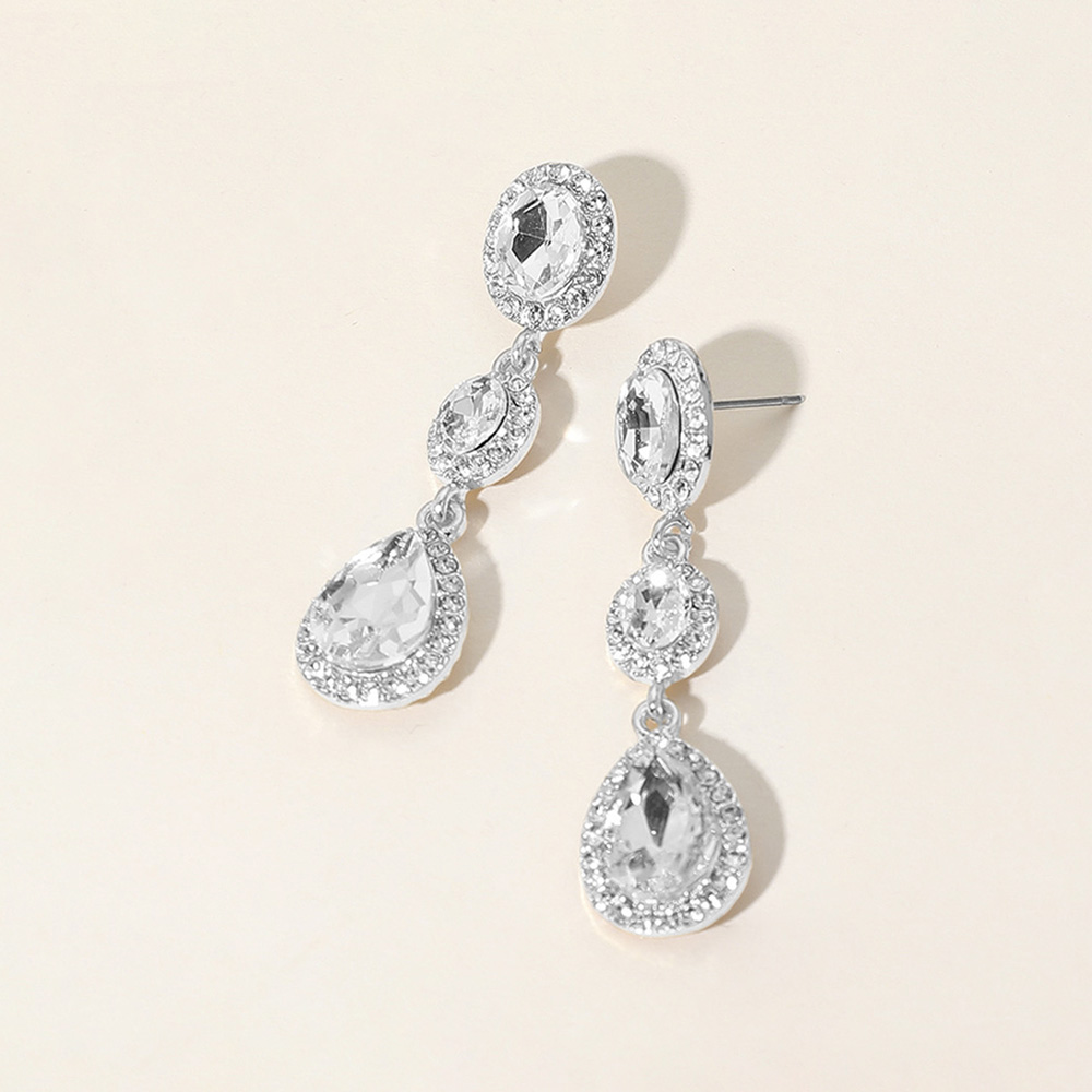 Marquise Rhinestone Trim Oval Dangle Necklace Jewelry Set