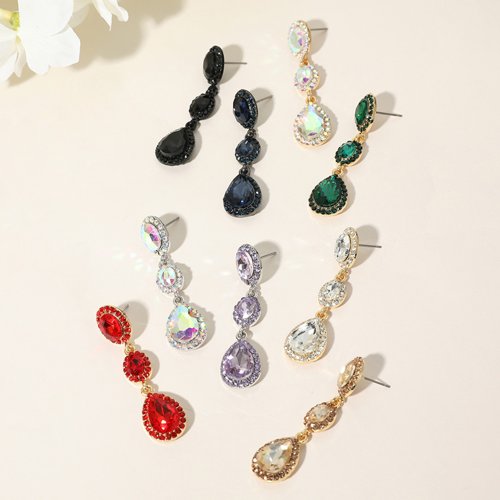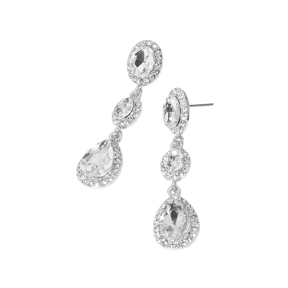 Oval Teardrop Stone Cluster Link Dropdown Evening Earrings