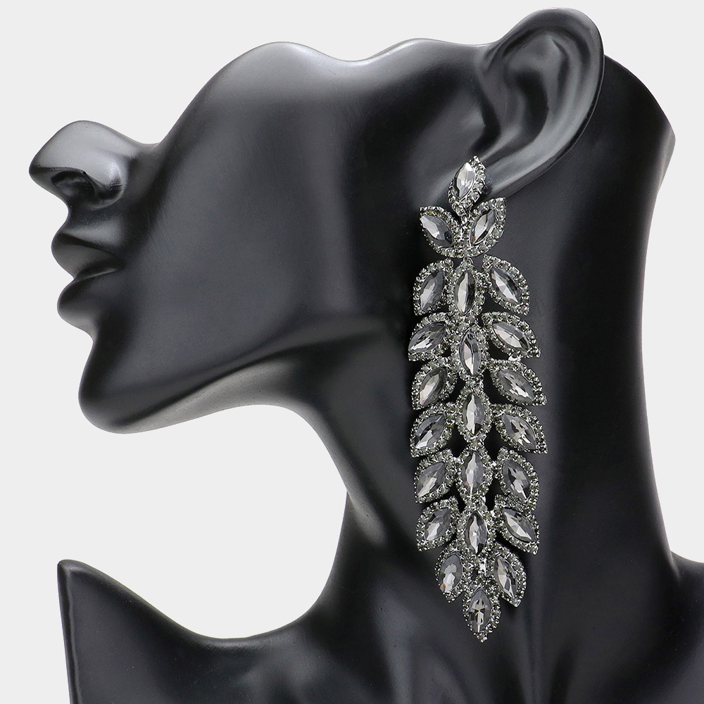 Oversized Crystal Rhinestone Marquise Evening Earrings
