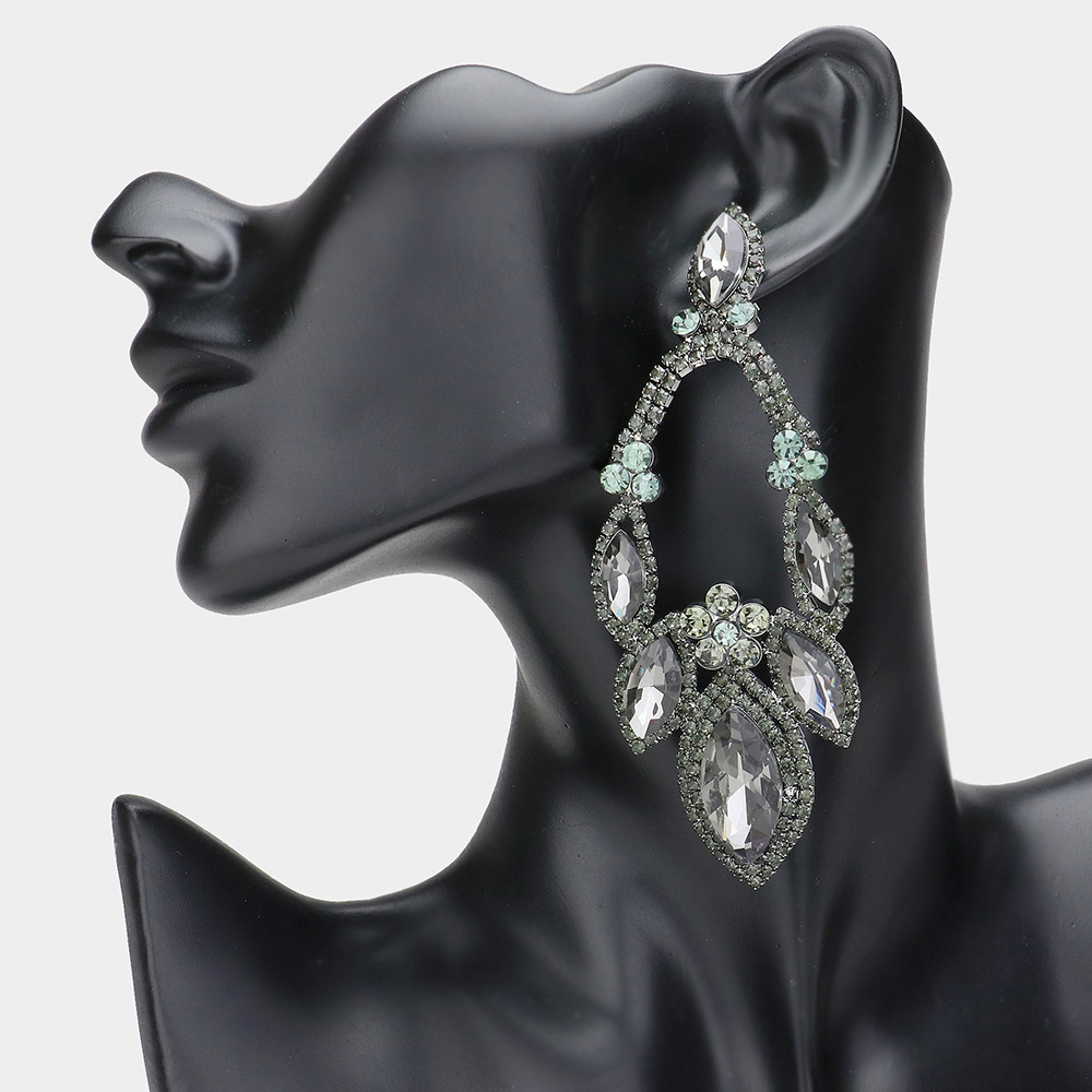 Oval Stone Accented Teardrop Dangle Evening Earrings