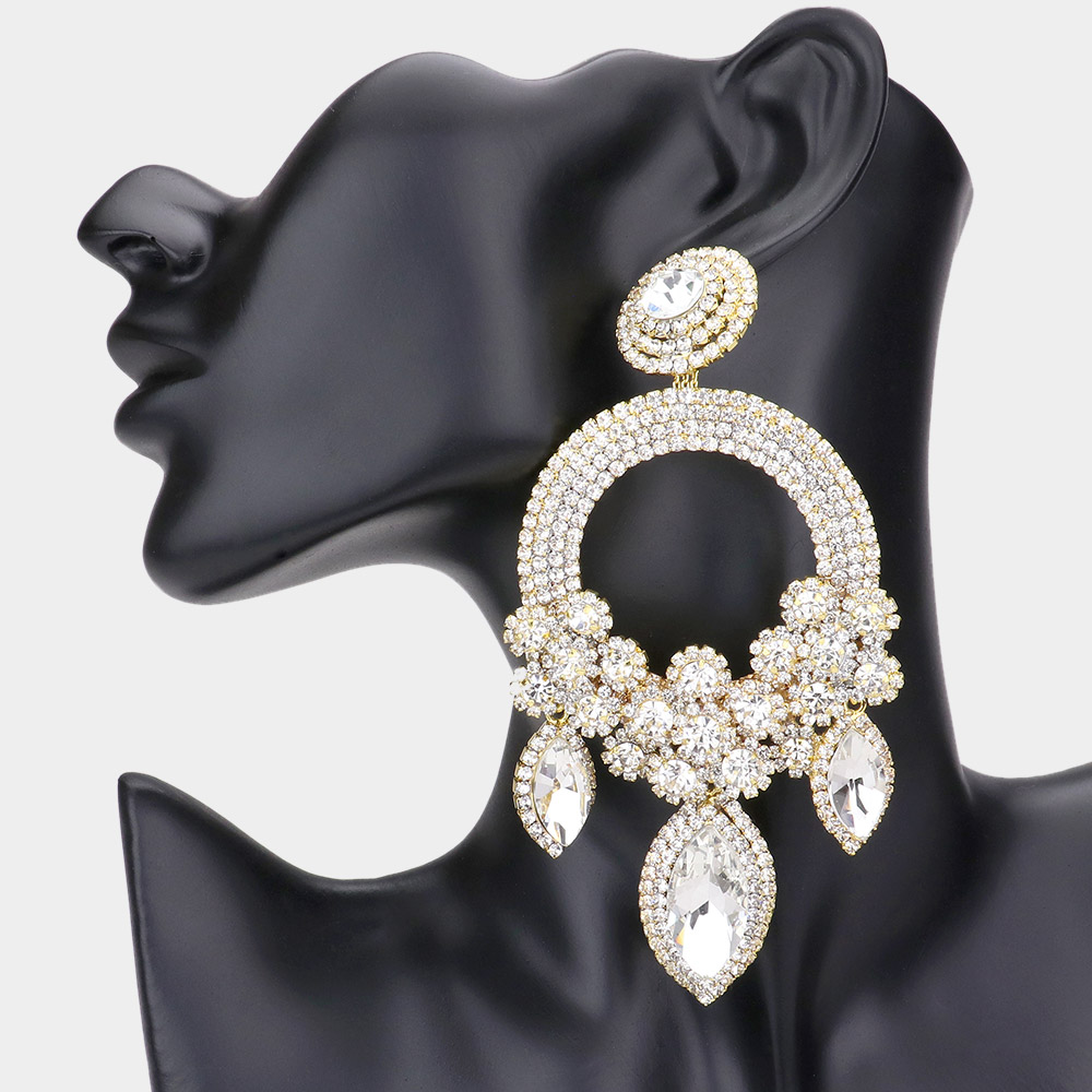 Oversized Marquise Triple Flower Chandelier Evening Earring