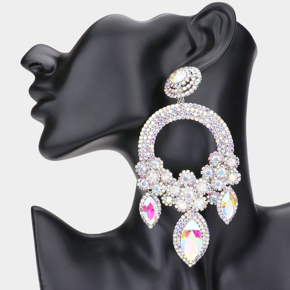 Oversized Marquise Triple Flower Chandelier Evening Earring