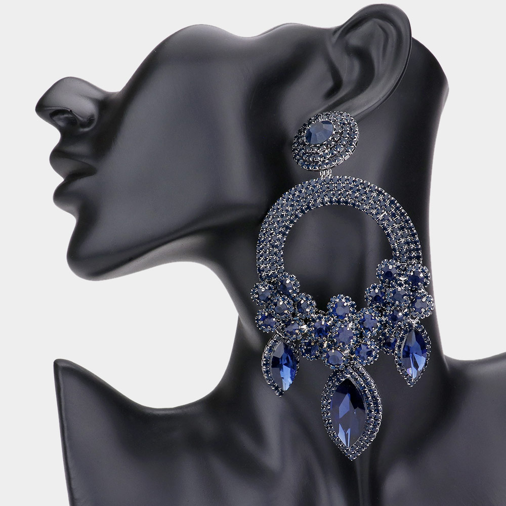 Oversized Marquise Triple Flower Chandelier Evening Earring