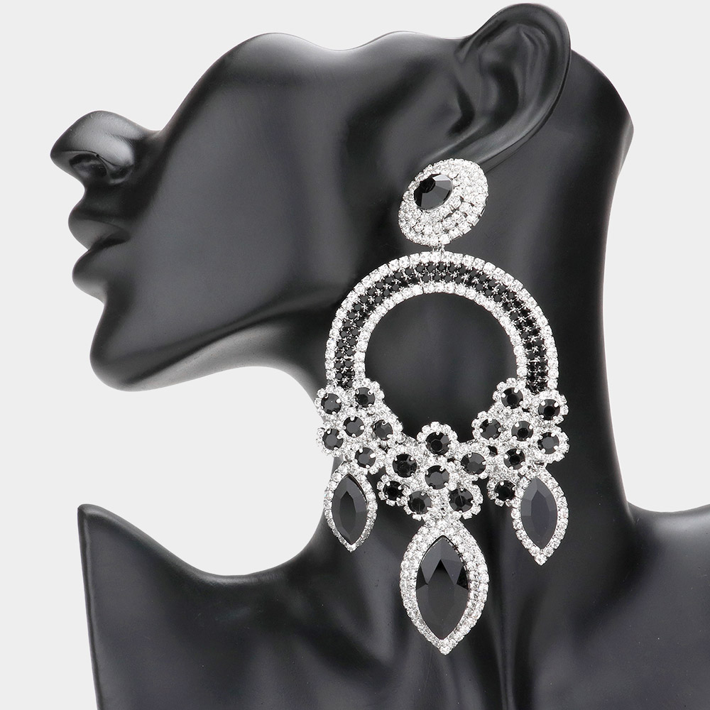 Oversized Marquise Triple Flower Chandelier Evening Earring