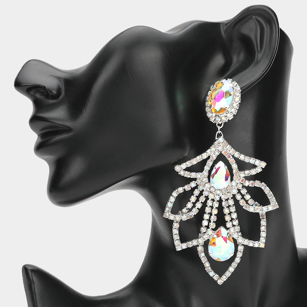 Oversized Teardrop Stone Cluster Accented Rhinestone Paved Chandelier Evening Earrings