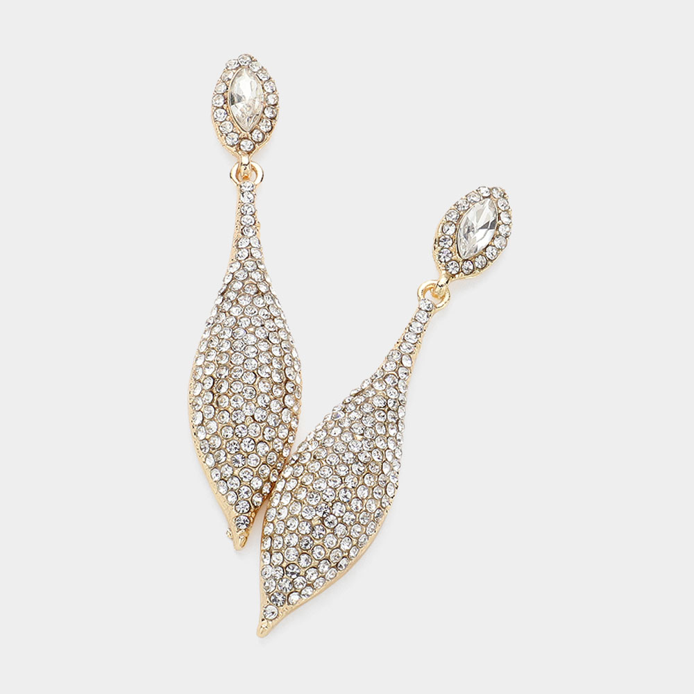 Floral Marquise Teardrop Stone Cluster Accent Dangle Evening Earrings