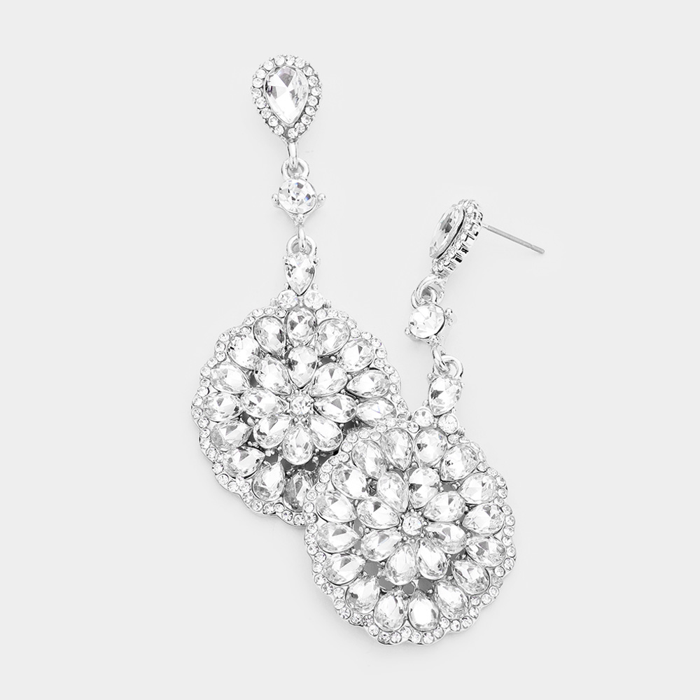 Pave Trimmed Crystal Teardrop Cluster Evening Earrings