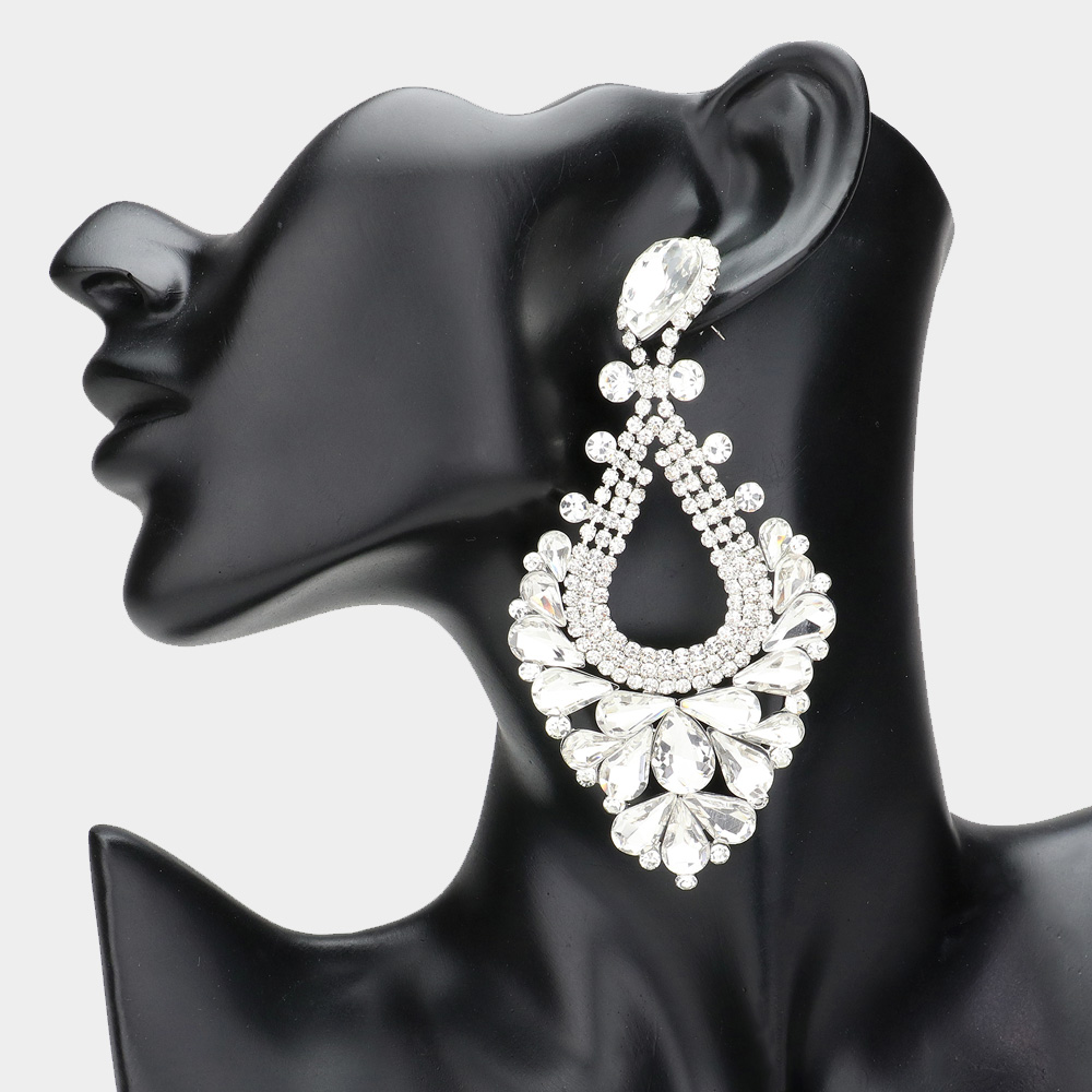 Pear Crystal Rhinestone Pageant Evening Earrings