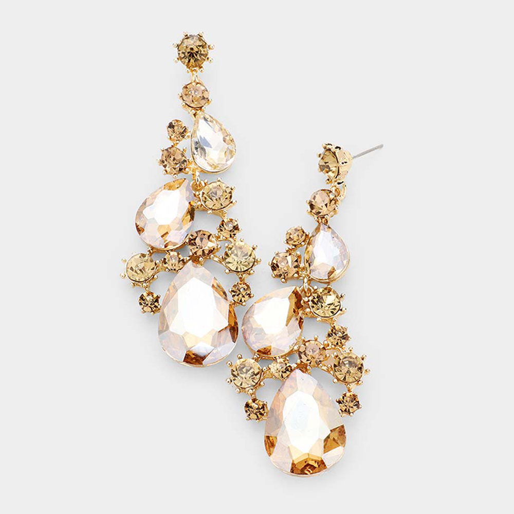 • Dazzle at any event with these statement teardrop earrings featuring a cluster of faceted stones in a stunning layered arrangement. A sophisticated choice for formal occasions, evening wear, or bridal styling.