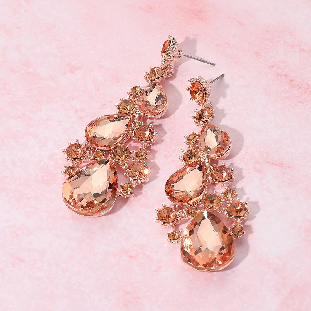 • Dazzle at any event with these statement teardrop earrings featuring a cluster of faceted stones in a stunning layered arrangement. A sophisticated choice for formal occasions, evening wear, or bridal styling.