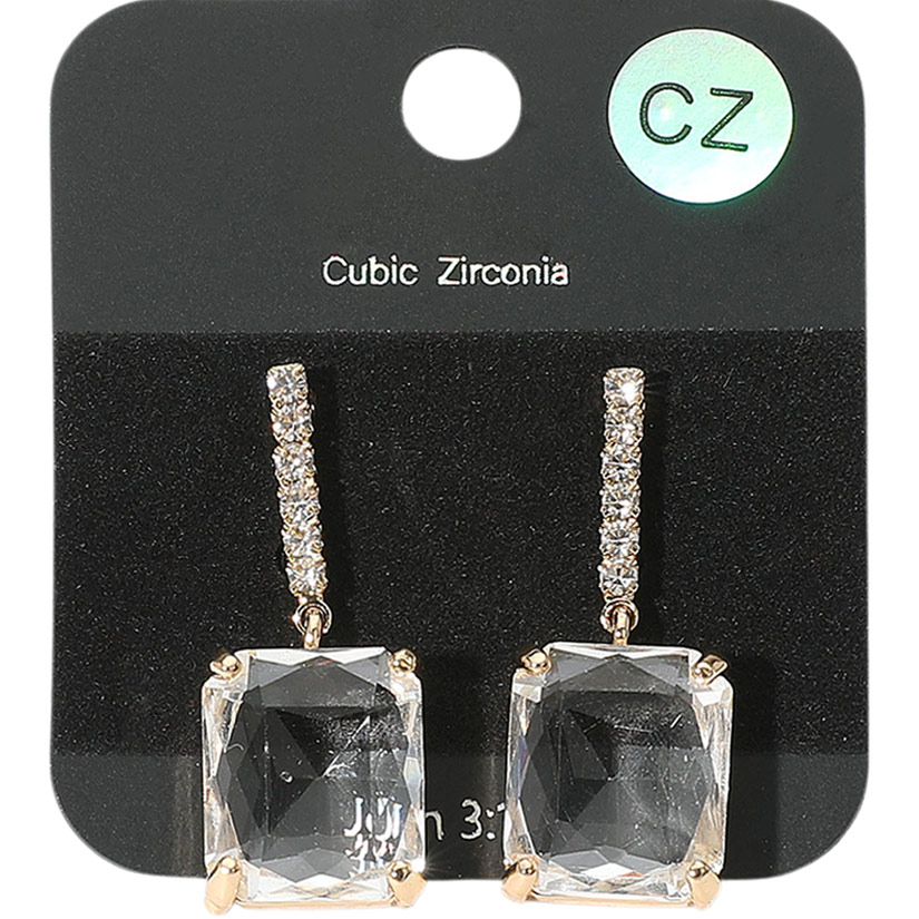 Rectangle CZ Stone Dangle Evening Earrings