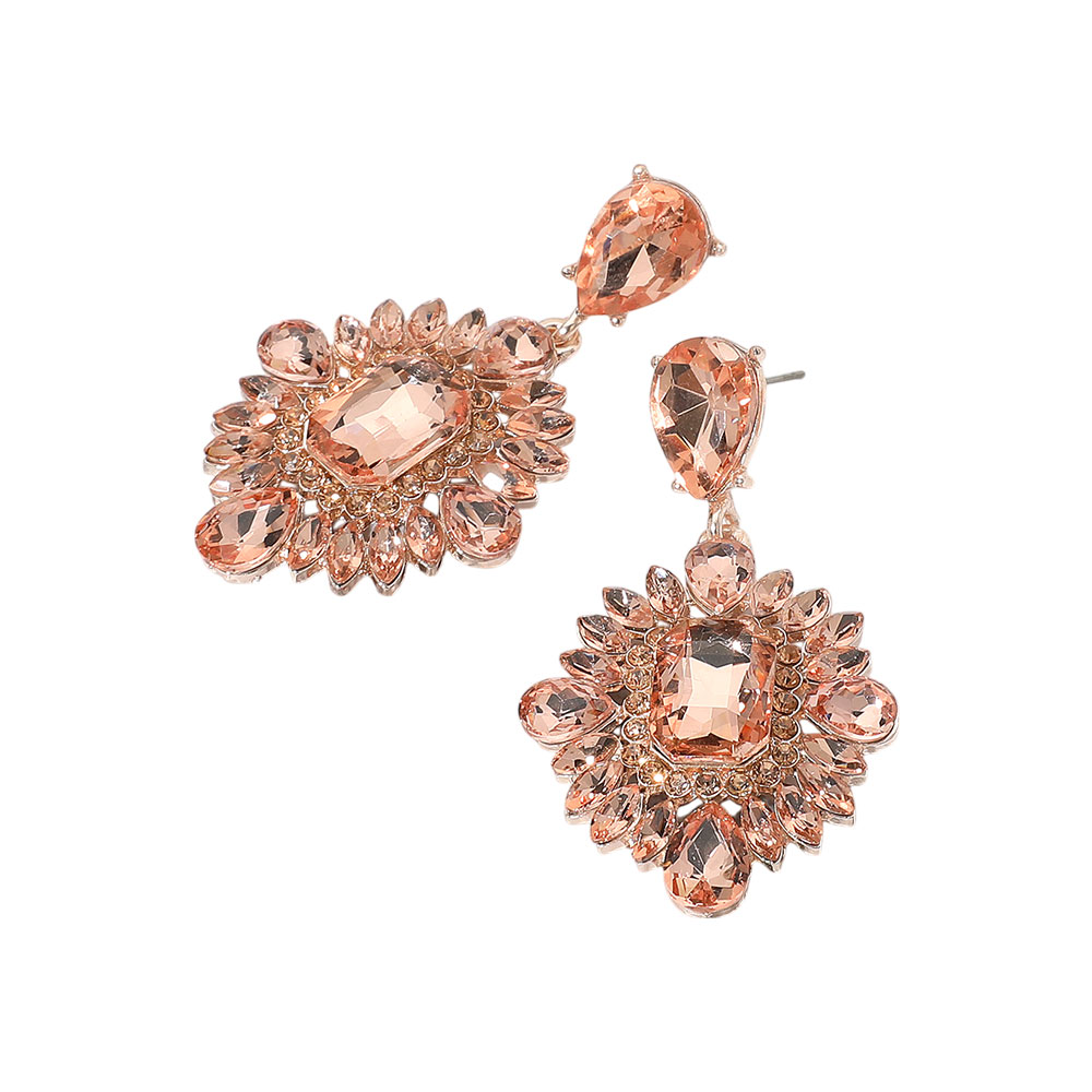 Rectangle Marquise Teardrop Stone Cluster Dangle Evening Earrings