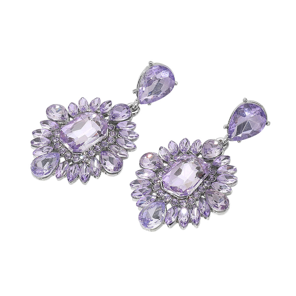 Rectangle Marquise Teardrop Stone Cluster Dangle Evening Earrings