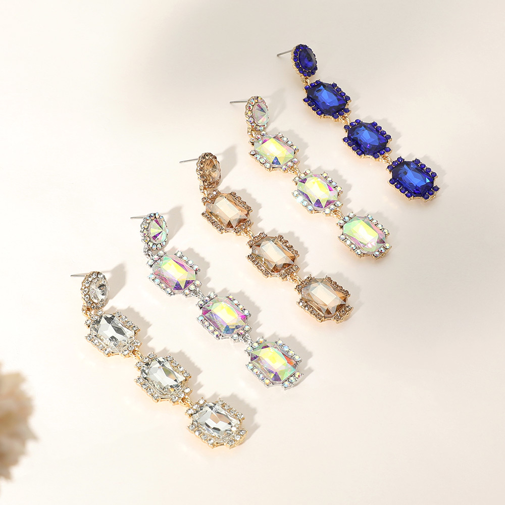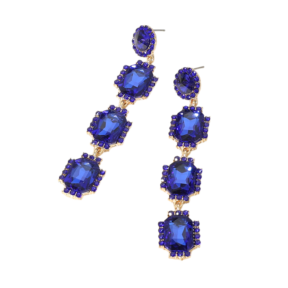 Rectangle Stone Cluster Drop Evening Earrings