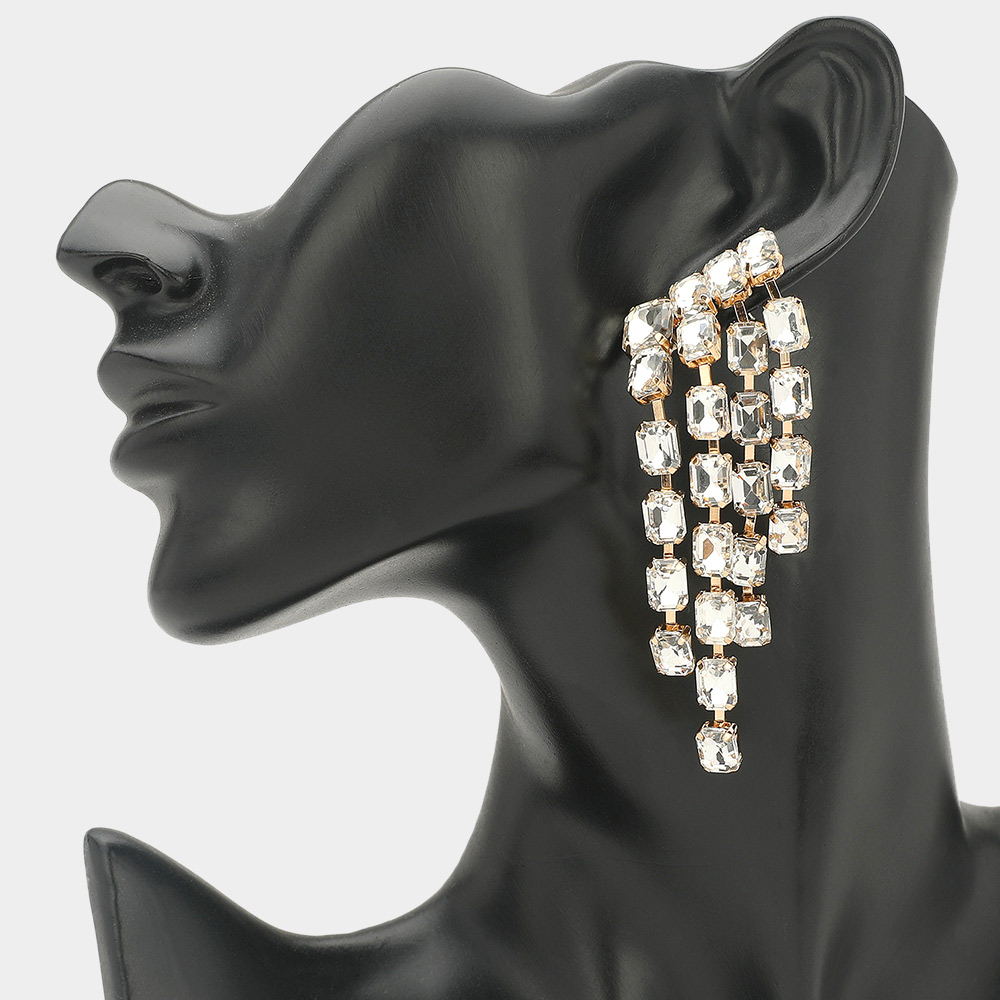Rectangular Stone Cluster Drop Chandelier Statement Evening Earrings