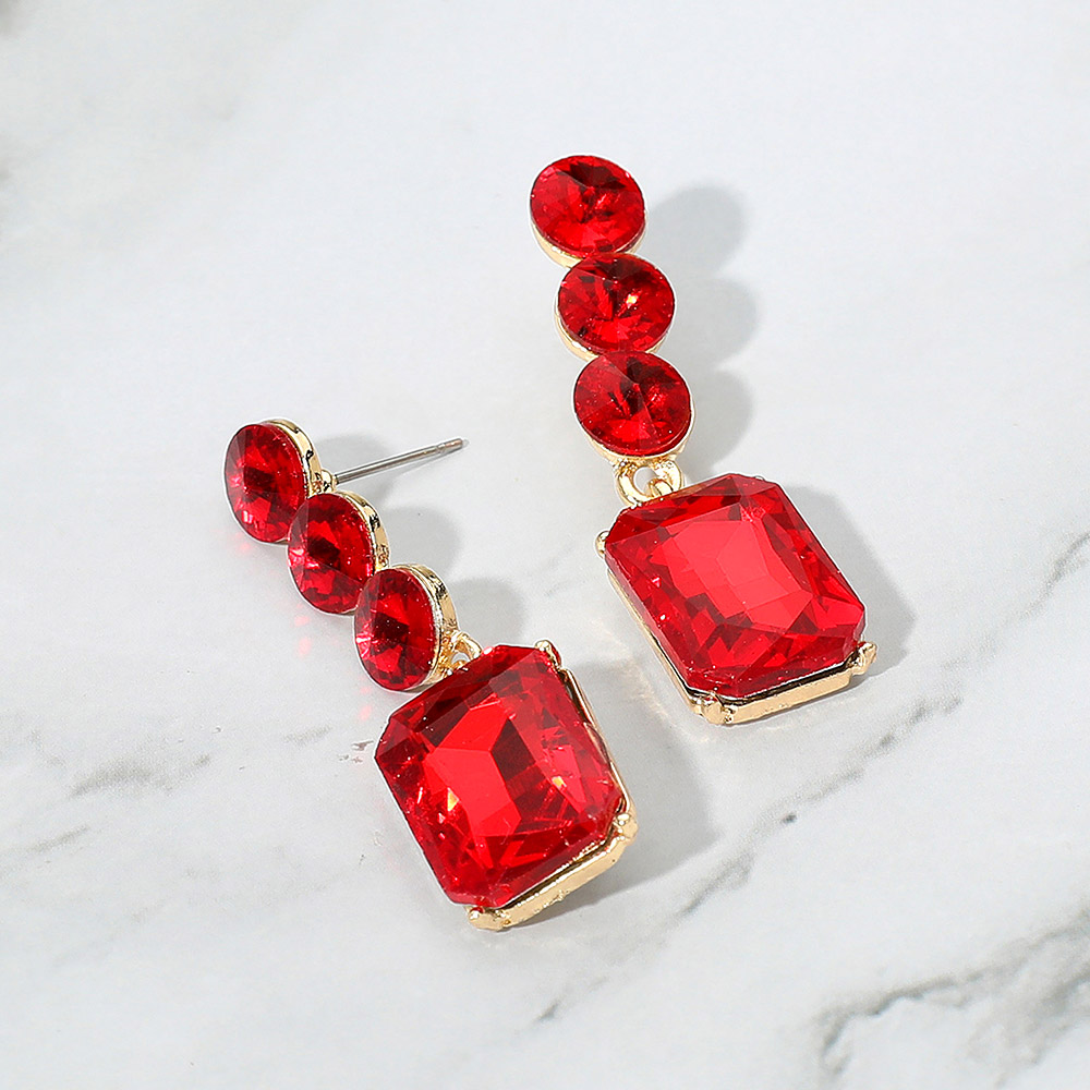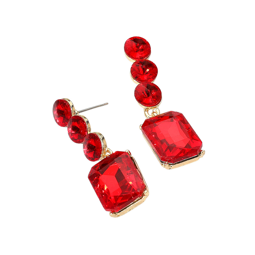 Details • Size : 0.5" X 1.9" • Post Back • These geometric crystal drop earrings feature round and rectangular faceted stones in a sleek cascading design. Perfect for adding modern elegance to evening wear, parties, or special occasions, they combine bold sparkle with sophisticated style. • Lead and Nickel Compliant
