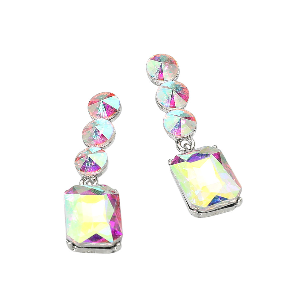 Details • Size : 0.5" X 1.9" • Post Back • These geometric crystal drop earrings feature round and rectangular faceted stones in a sleek cascading design. Perfect for adding modern elegance to evening wear, parties, or special occasions, they combine bold sparkle with sophisticated style. • Lead and Nickel Compliant