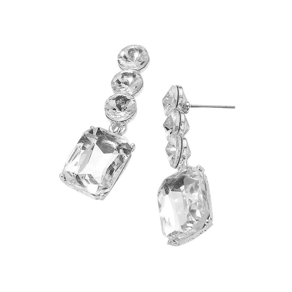 Rectangular Stone Cluster Drop Evening Earrings Rectangular Stone Cluster Drop Evening Earrings