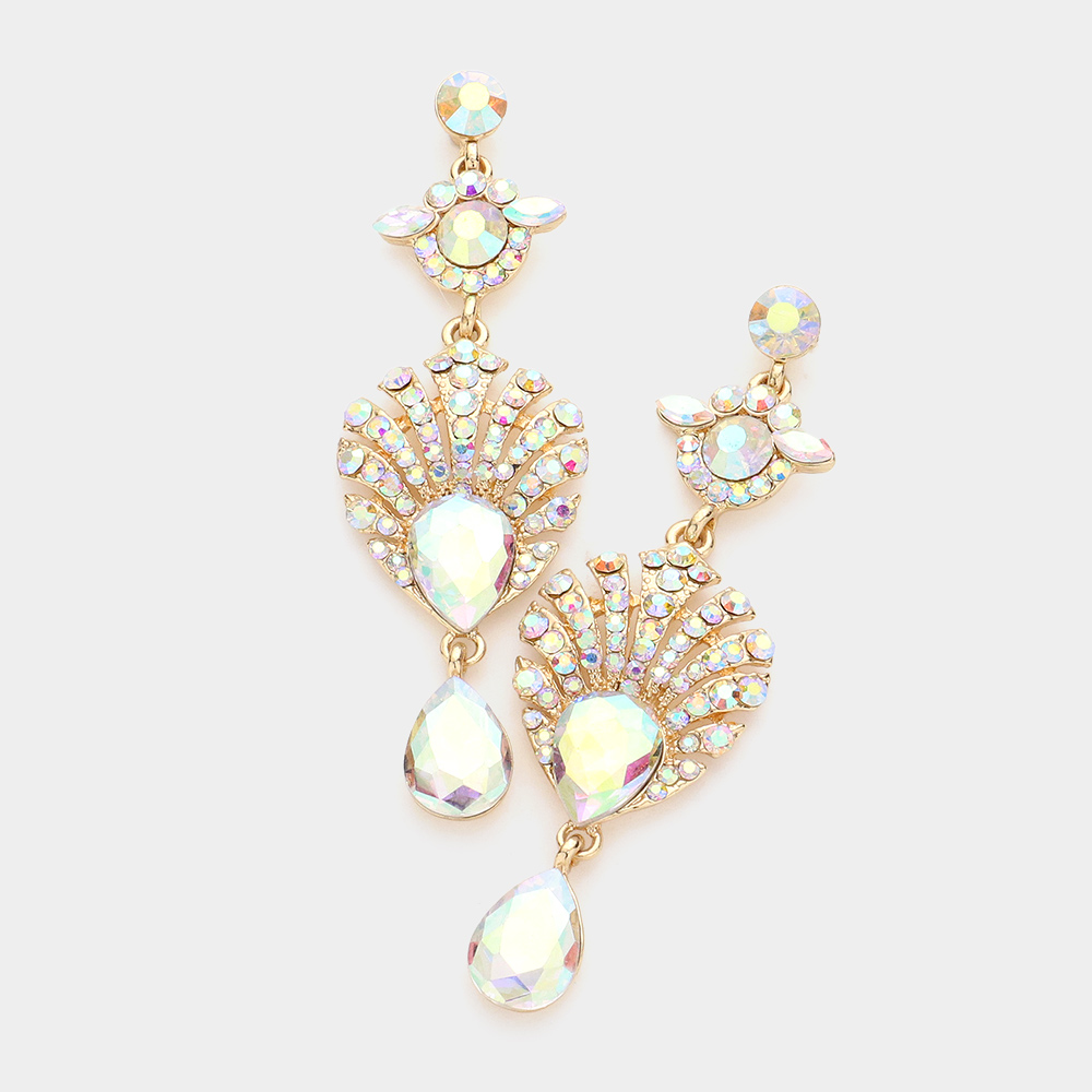 Oversized Glass Stone Embellished Diamond Frame Chandelier Evening Earrings