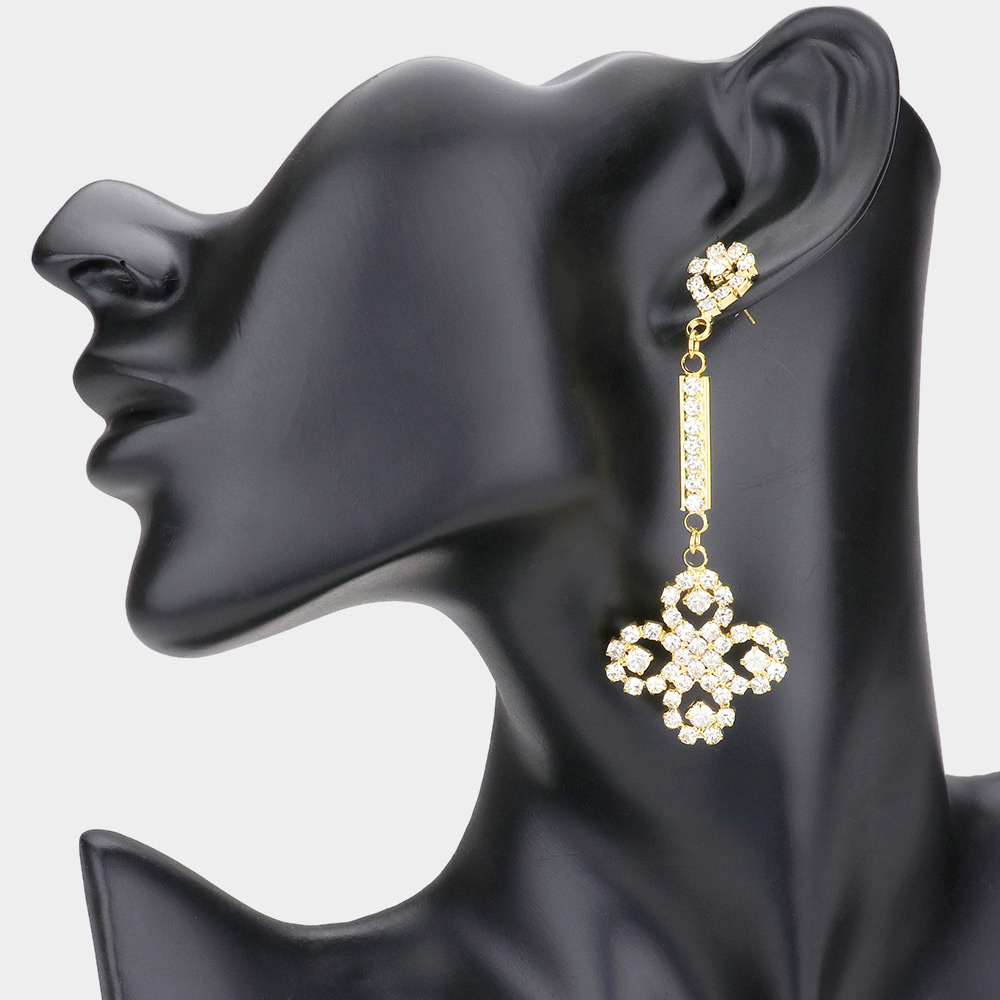 Rhinestone 4-Leaf Clover Dangle Evening Earrings