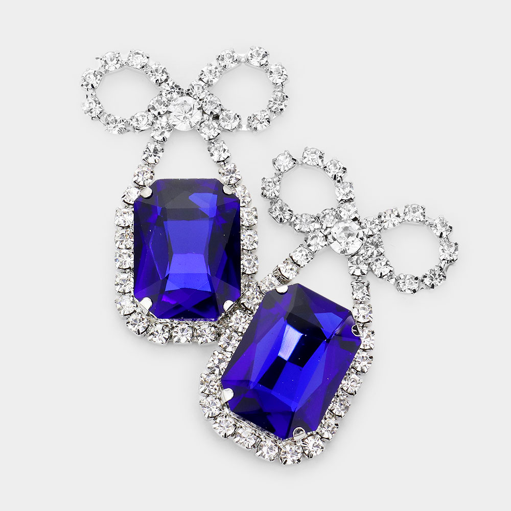 Rhinestone Bow Emerald Cut Stone Evening Earrings
