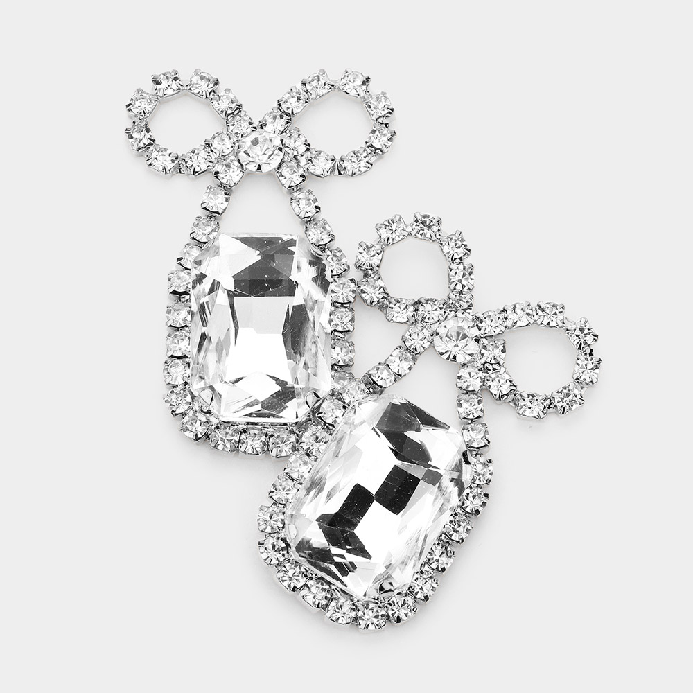 Rhinestone Bow Emerald Cut Stone Evening Earrings
