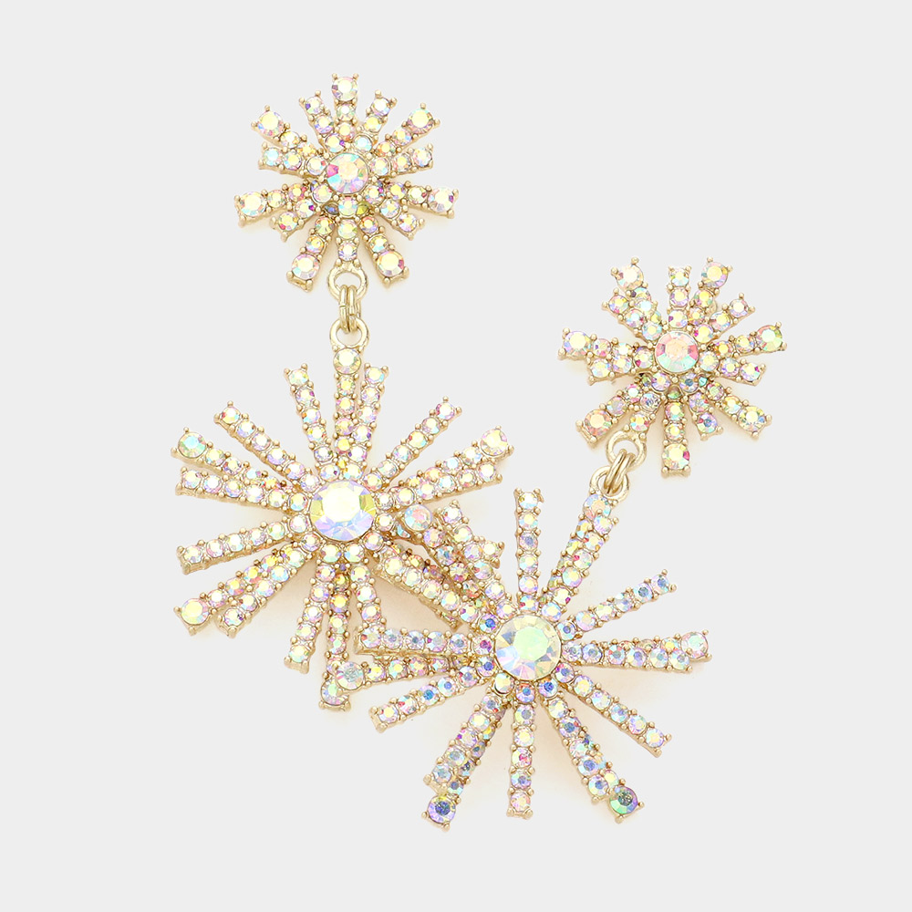 Oval Stone Accented Teardrop Dangle Evening Earrings