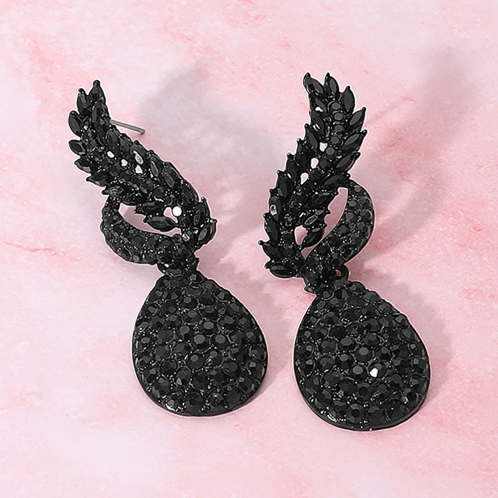 Rhinestone Embellished Teardrop Dangle Evening Earrings