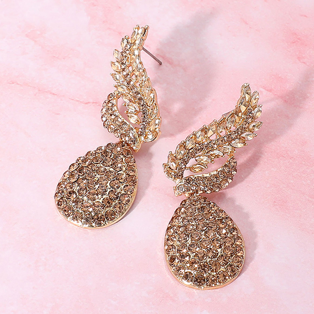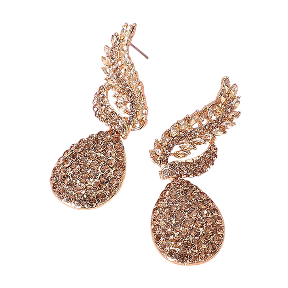 Rhinestone Embellished Teardrop Dangle Evening Earrings