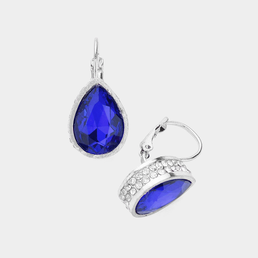 Rhinestone Embellished Teardrop Stone Lever Back Evening Earrings