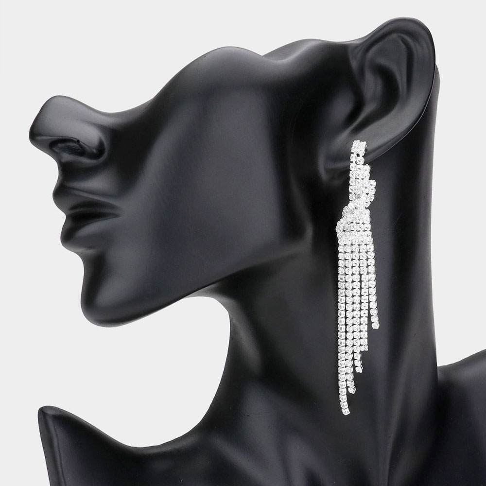 Teardrop Accented Rhinestone Fringe Dangle Evening Earrings
