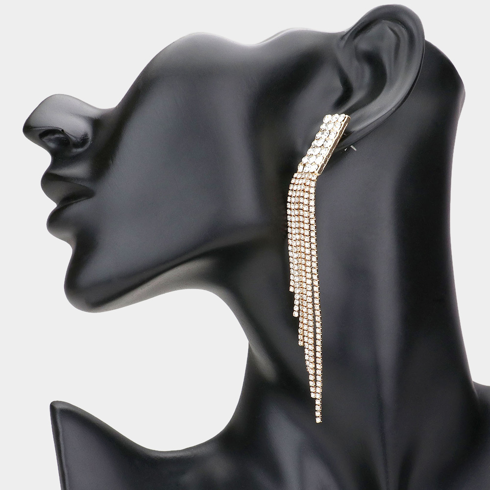 Round Glass Stone Flower Pointed Bohemian Thread Fringe Earrings