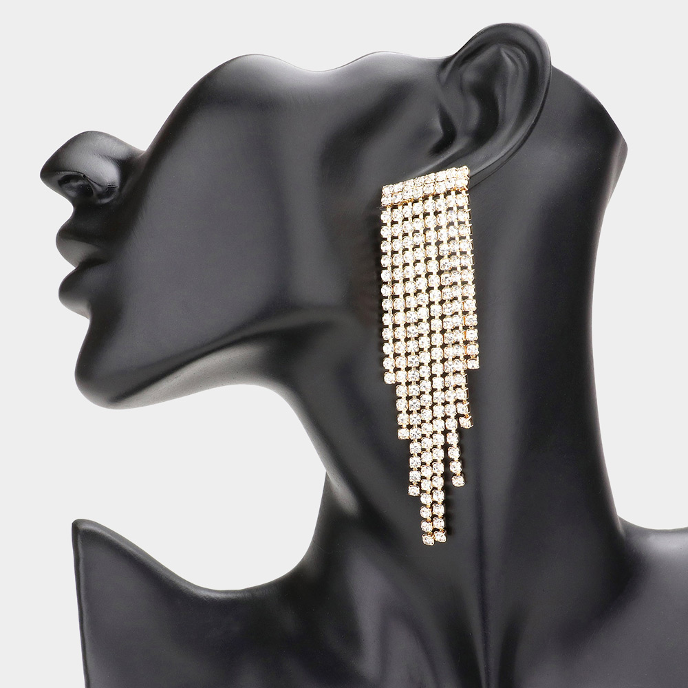 Felt Back Seed Beaded Hat Rhinestone Fringe Dangle Earrings
