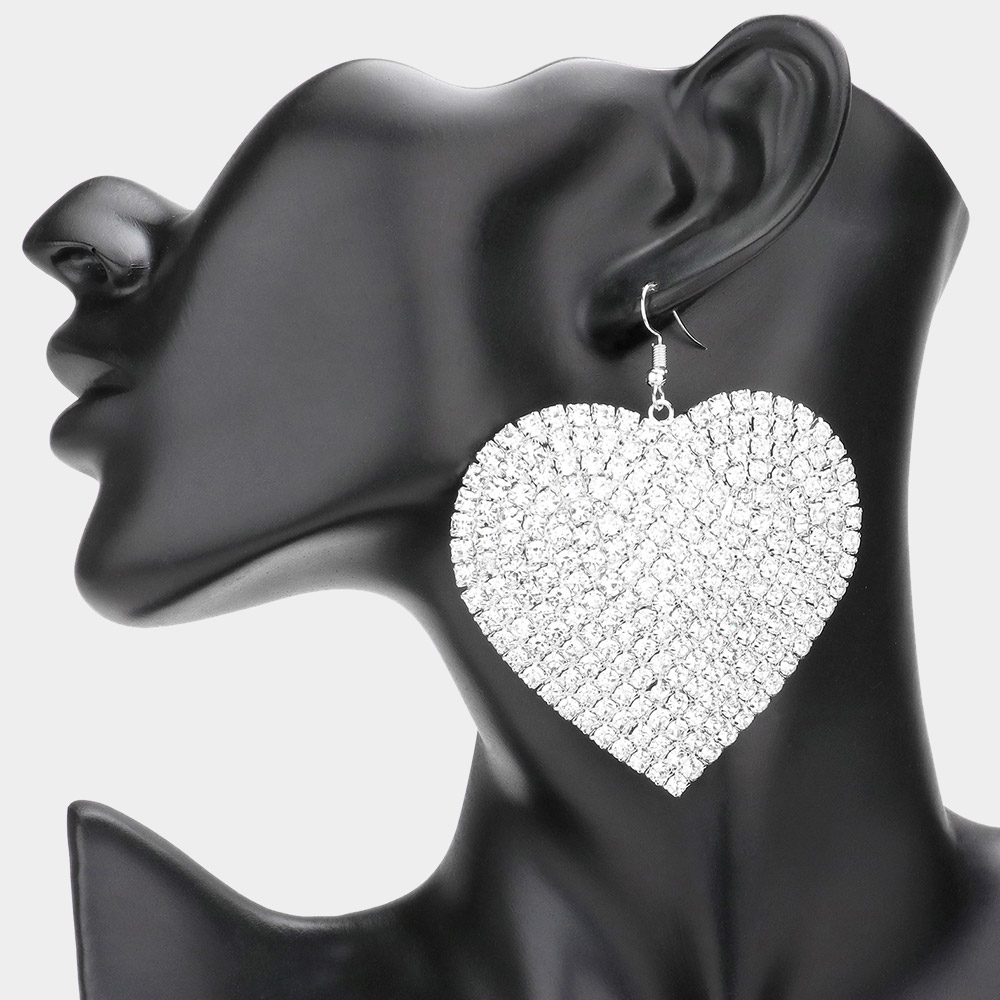 Rhinestone Heart Dangle Evening Earrings