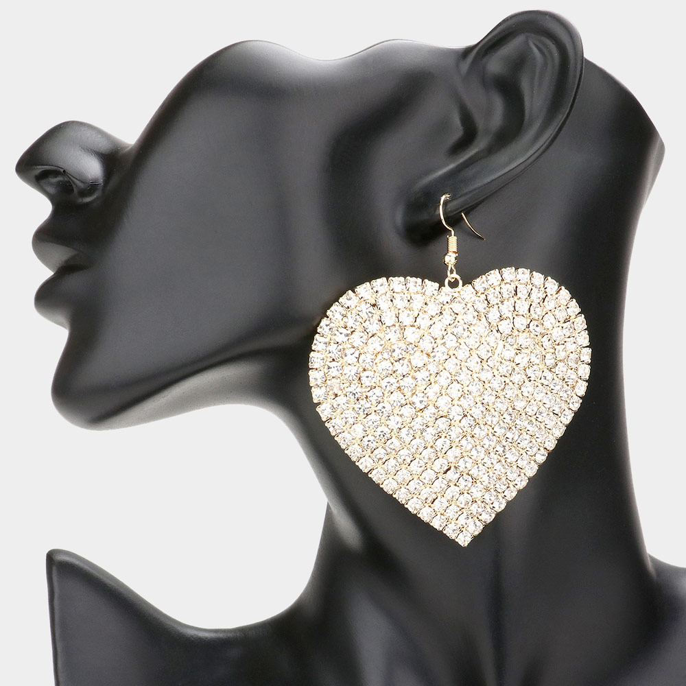 Rhinestone Heart Dangle Evening Earrings