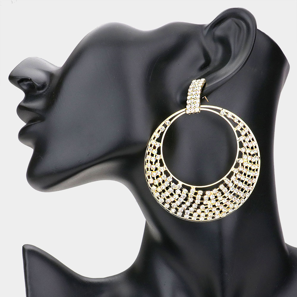 Rhinestone Pave Abstract Circle Dangle Evening Earrings