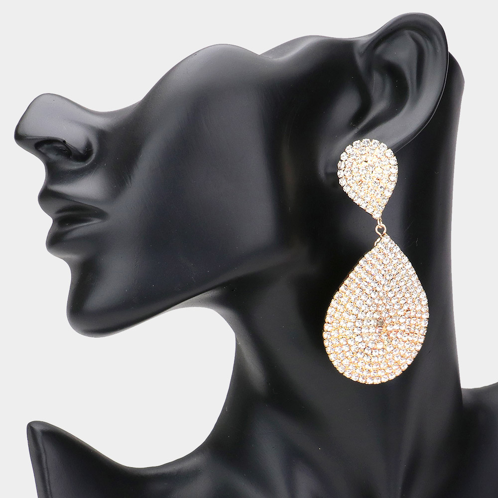 Rhinestone Pave Double Teardrop Link Dangle Evening Earrings