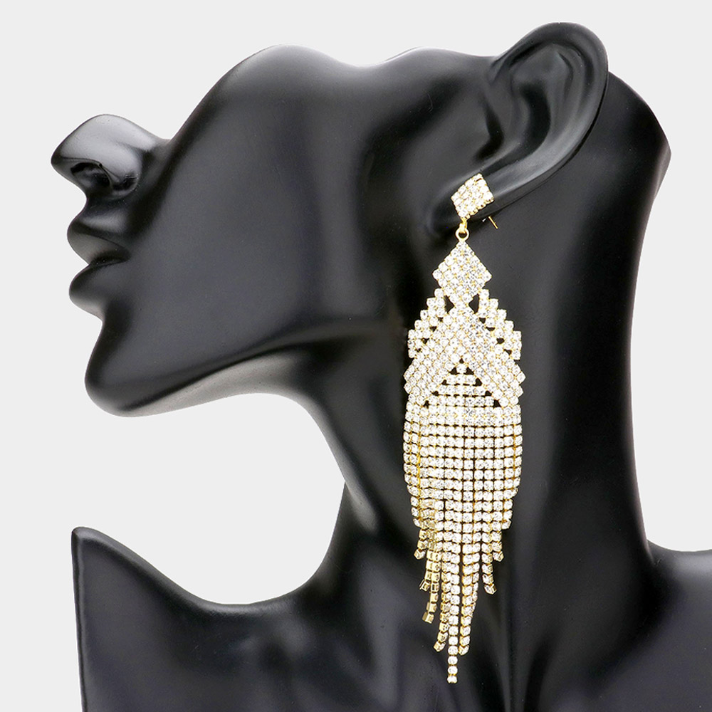 Rhinestone Pave Fringe Evening Earrings