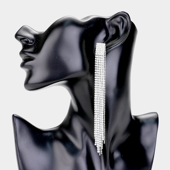 Rhinestone Pave Long Drop Evening Earrings