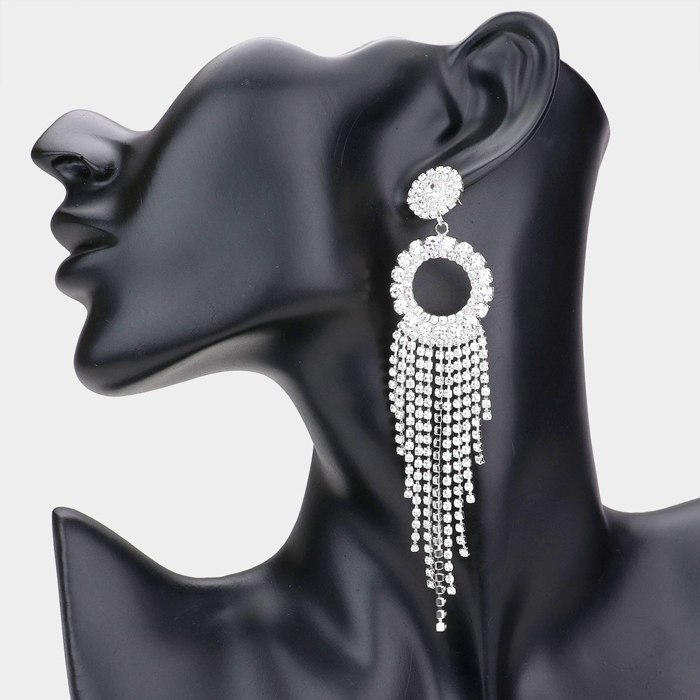 Rhinestone Pave Open Circle Fringe Evening Earrings