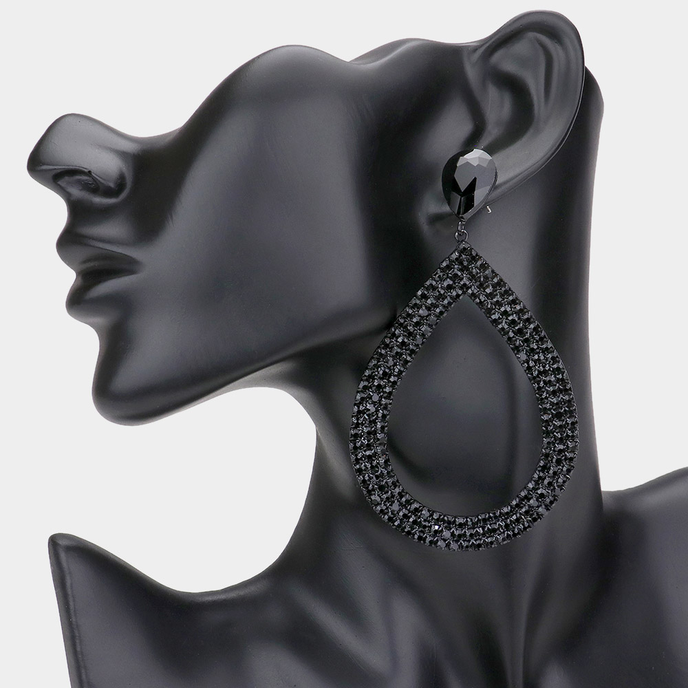 Rhinestone Pave Open Teardrop Dangle Evening Earrings