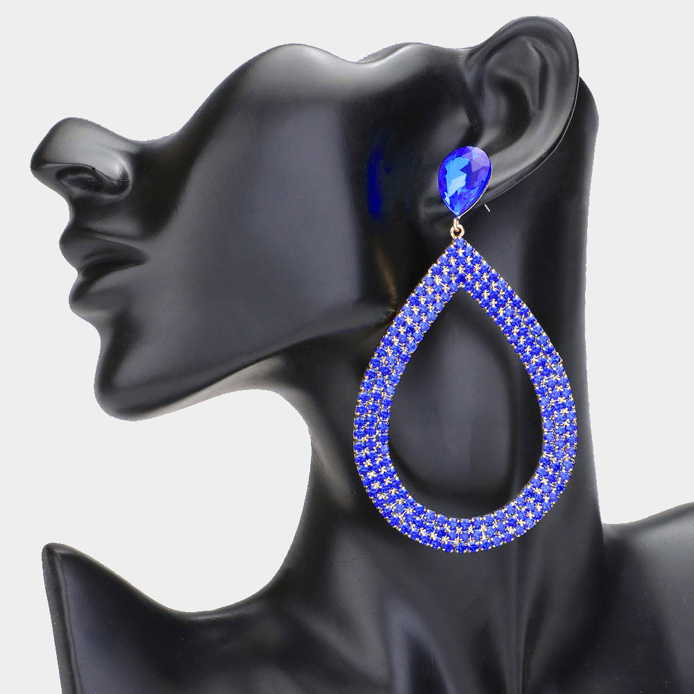 Rhinestone Pave Open Teardrop Dangle Evening Earrings