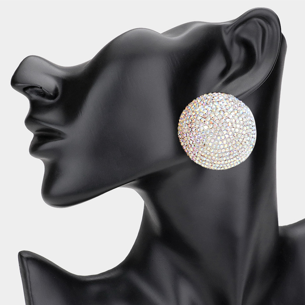 Rhinestone Pave Round Evening Earrings