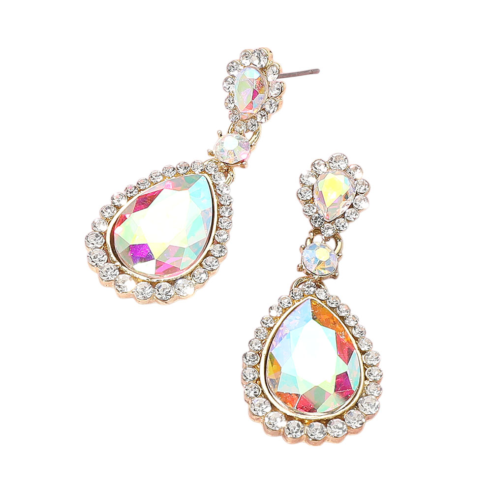 • Dazzling drop earrings with teardrop-shaped iridescent crystals surrounded by clear rhinestones, perfect for weddings, proms, or glamorous nights out.