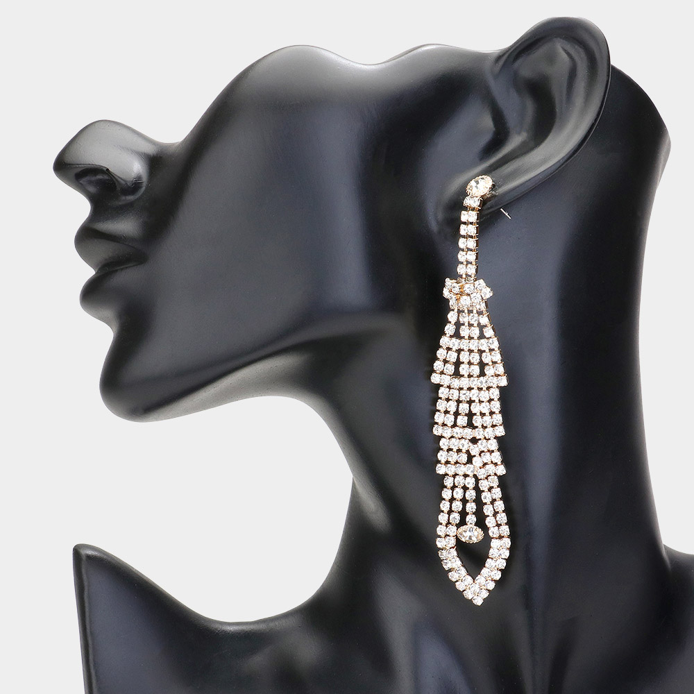 Secret Box _ Long Dropped Bubble Stone Embellished Mesh Chain Dangle Earrings