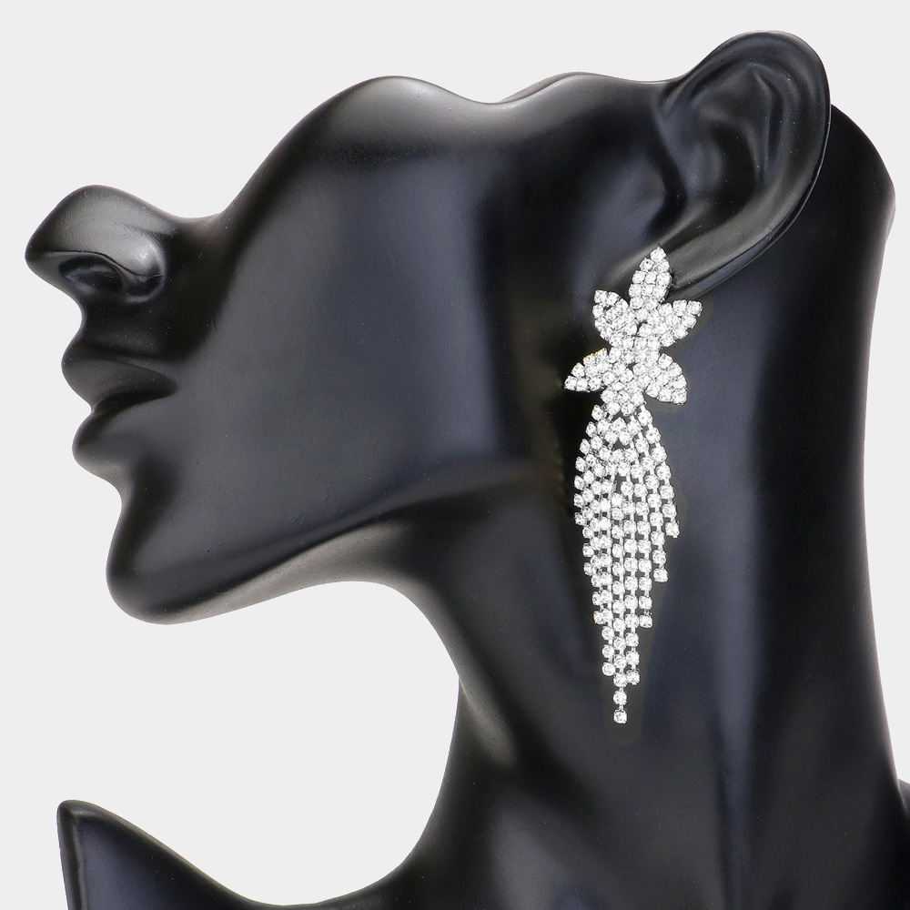 Rhinestone Paved Flower Fringe Evening Earrings
