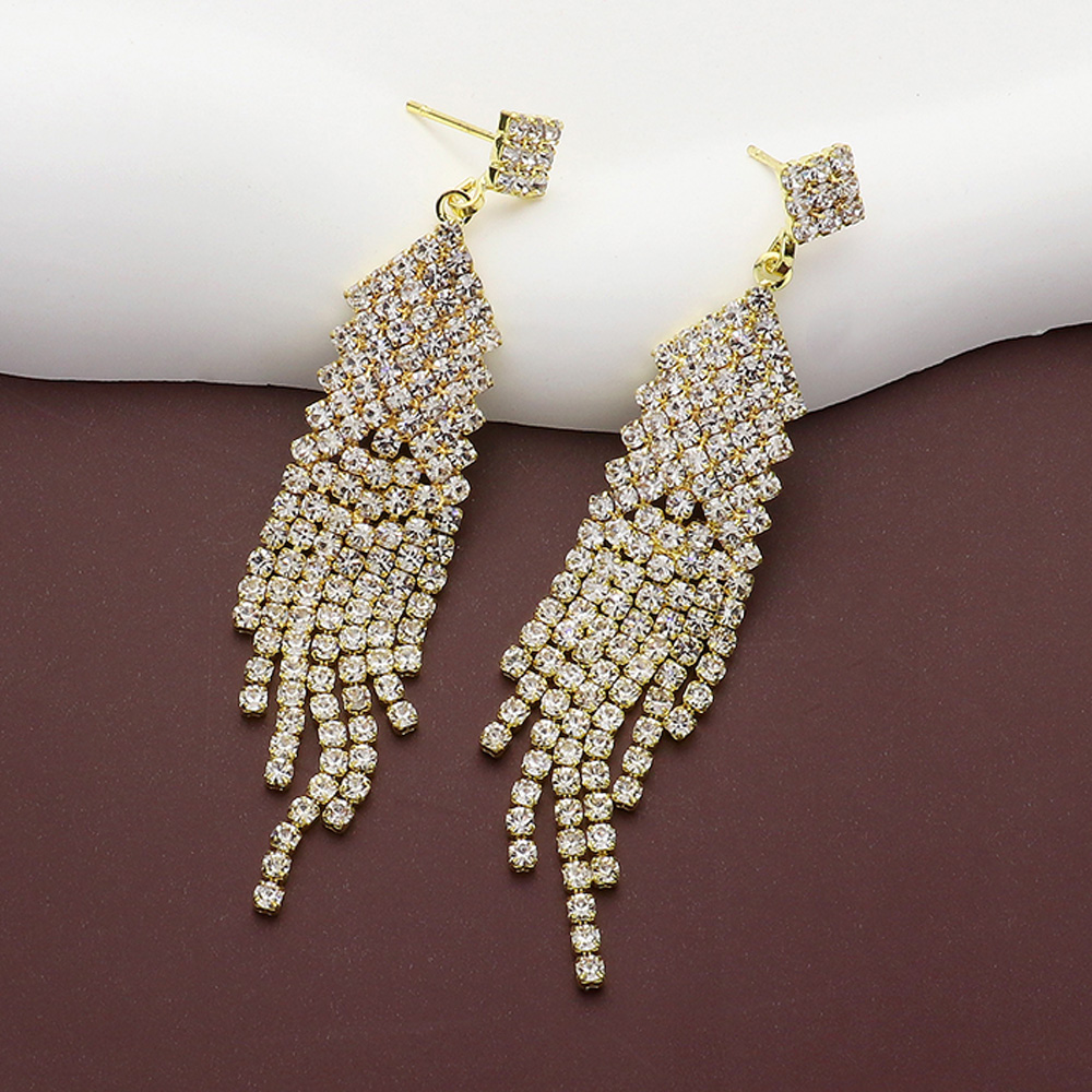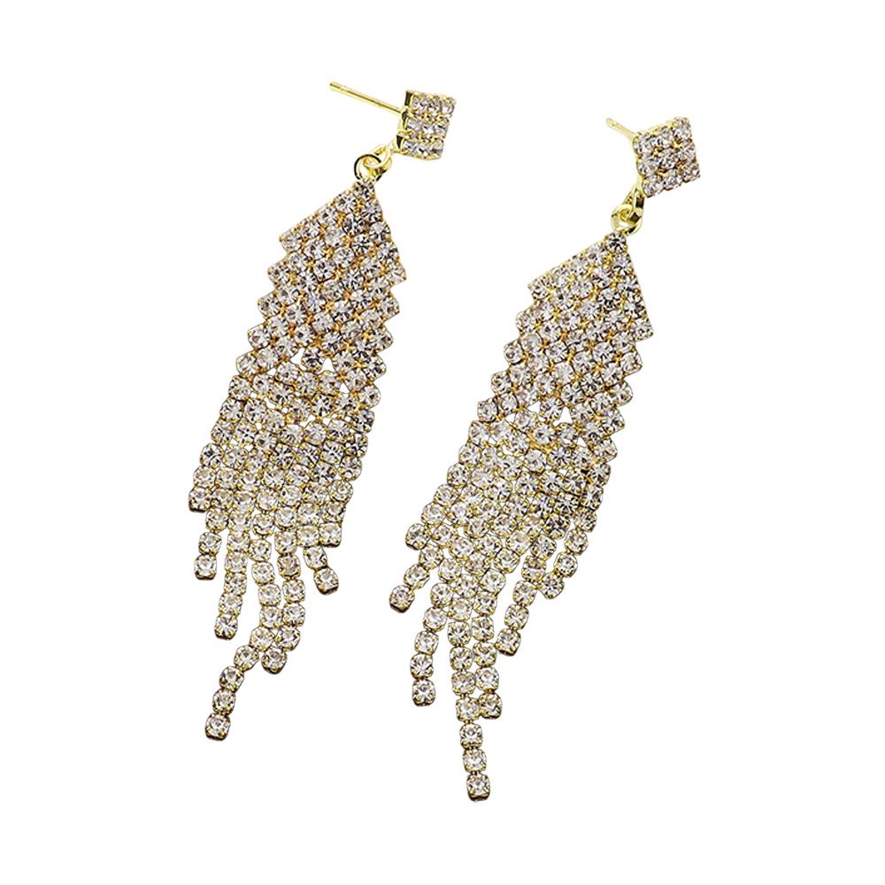 Stone Embellished Rhinestone Drop Fringe Evening Earrings