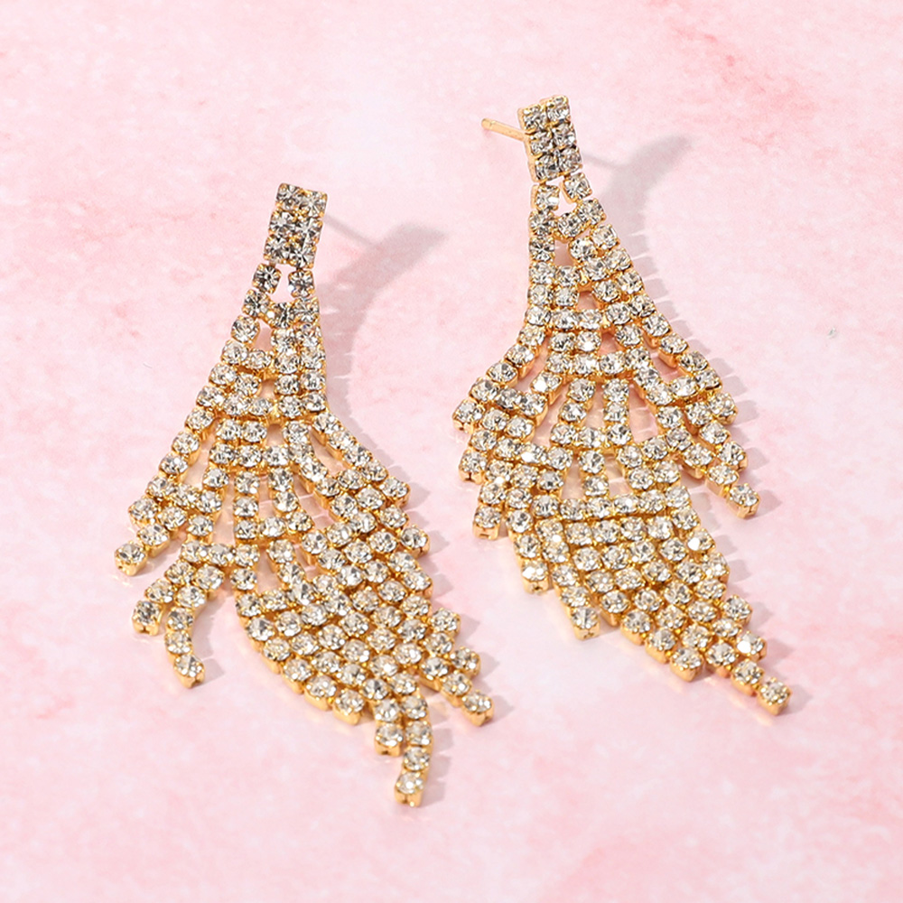 Rhinestone Paved Fringe Chandelier Evening Earrings