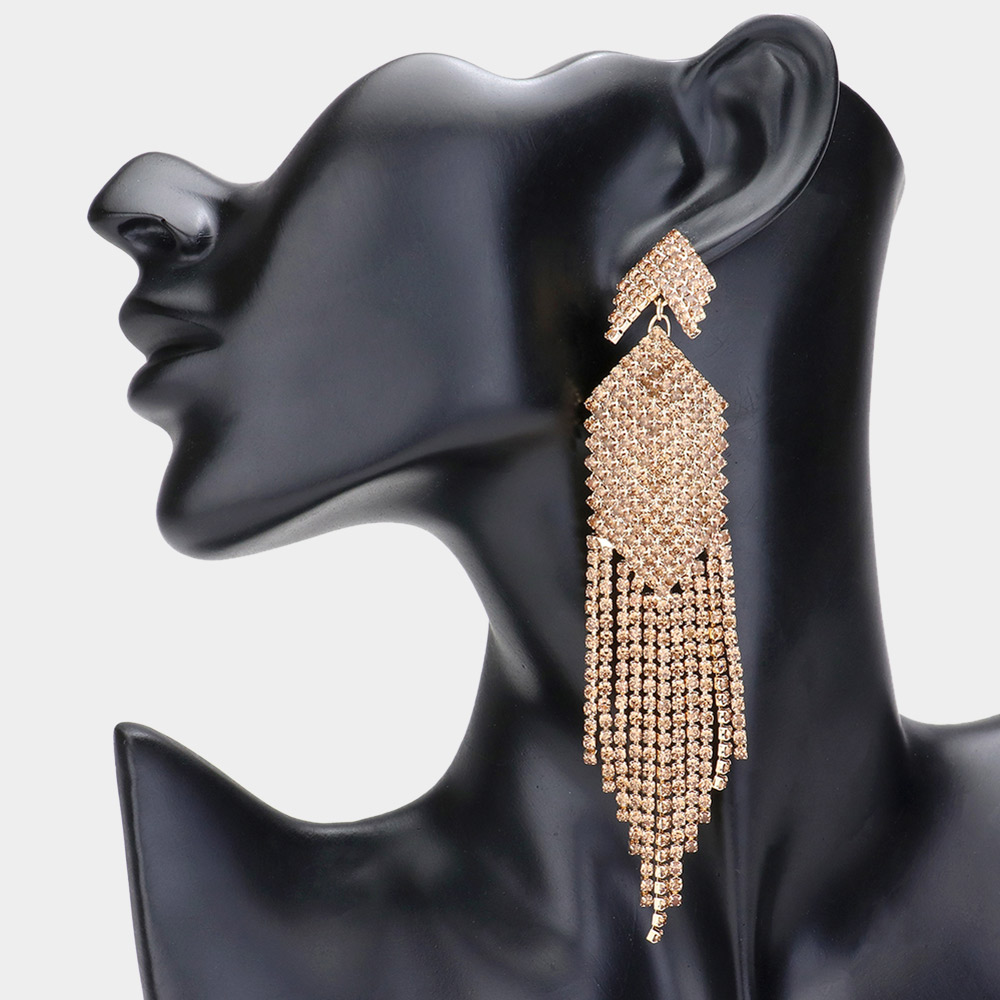 Rhinestone Paved Fringe Dropdown Evening Earrings