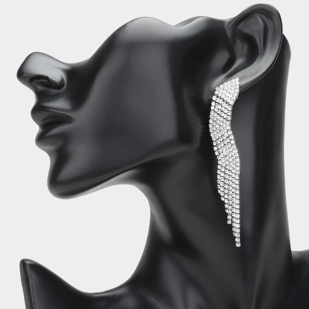 Rhinestone Fringe Dangle Evening Earrings